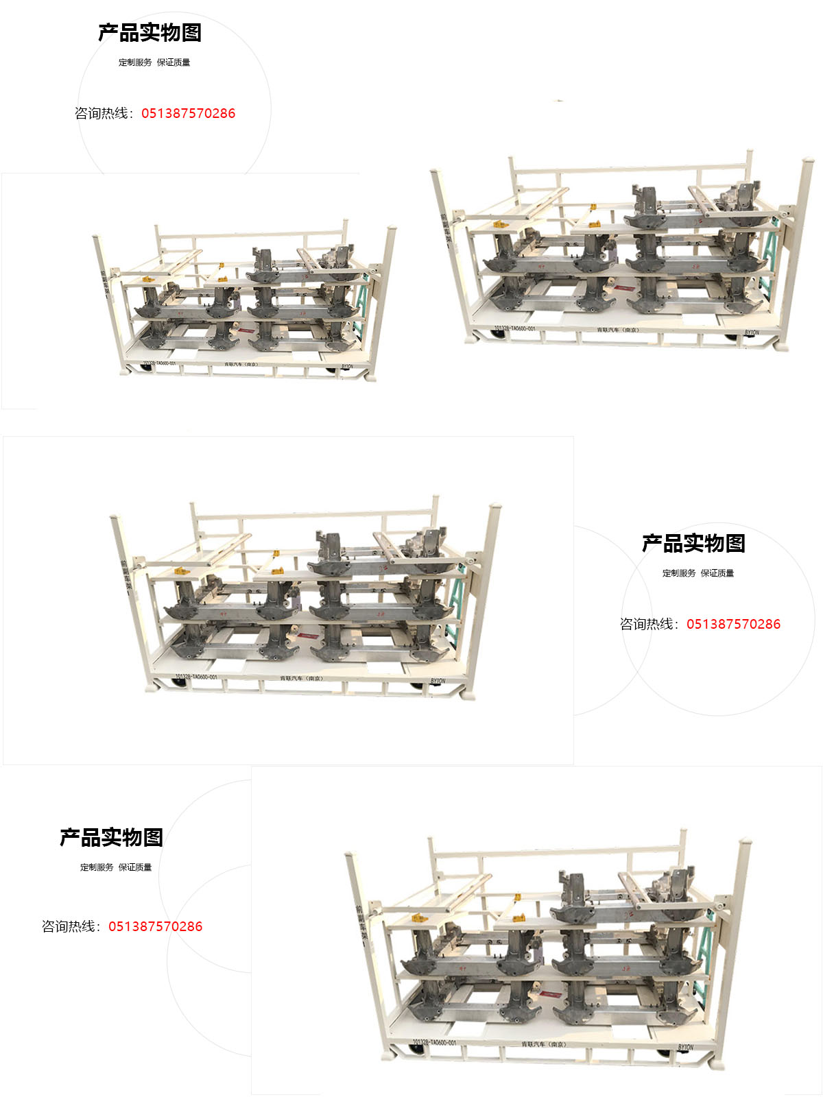 1.汽車前副車架存放及周轉運輸專用料架;